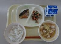 ご飯 牛乳 さばのカレーやき のりずあえ キャベツとあつあげのみそしる
