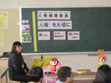 3時間目、3年生は、6名の人権擁護委員の方々をお招きして人権教室を行いました。いじめが出てくるアニメを見ている時の子どもたち表情は、明らかに何か、心に刺さるものがある、という目やしぐさをしていました。これが今後、子どもたちにとって人権感覚になっていくのだと感じました。最後にみんなで元気に人権体操をして近くの人とみんな手をつなぎました。その手の温かさを忘れないようにしたいです。人権擁護委員の方々、大切な時間をありがとうございました。
