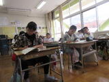 授業アラカルト 投稿: 情報担当 (11/13) 5時間目、4年生は国語「ごんぎつね」のクライマックスの学習でした。ごんが最後、ぐったりとうなずいた時、どんな気持ちだったかという課題に対し、子どもたちは今までの学びを総括し、教科書から根拠となる文章を探して話し合いました。授業が終わっても「ああでもない、こうでもない」とつぶやきが終わりませんでした。この姿が「自分事」の姿です。 Tweet -