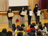今日は、2学期の終業式でした。話を真剣によい姿勢で聞く姿がとても光りました。生活指導部からは冬休みの過ごし方についての話があり、子どもたちは、うなずきながら話を聞いていました。その後、代表児童による2学期頑張ったことの発表、そして各種コンクールで頑張った人への賞状伝達がありました。各学年の2学期の頑張りを5,7,5の句で詠んだ6年生のものを紹介します。「旅立つ日 残す歴史を 思う日々」6年生が残された小学校生活の日々でどんな伝統を残していけばよいかを必死に考え、行動に移そうとする、そんな姿や思いを詠みました。