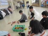 2,3時間目、1年生は、黒小サポーターズの方々を講師にお招きし、昔遊び体験を行いました。お手玉、けん玉、だるま落とし、こま回しなど、子どもたちは、サポーターズの方々からやりかたを教えてもらいながら様々な昔遊びを体験し、見る見る腕前が上達しました。帰り際、サポーターズの方々が「子どもたちに教えに来たんだけど、逆に子どもから教えられました。来てよかった。楽しかった。」というコメントでした。「子どもから教えられる」、教育の原点がここにある気がしました。サポーターズの方々、貴重な時間をありがとうございました。
