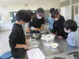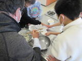 「おいしくできるといいな」白玉だんごづくり 投稿: 情報担当 (14:05) 学び学級の子どもたちは、5時間目の自立活動で白玉だんごづくりを行いました。グループごとに力を合わせて白玉だんごを作ります。どの子どもたちもニコニコしながら楽しそうに活動していました。作っている部屋に入ると真っ先に「先生にも食べてもらうからね」と温かい言葉をかけてくれました。この温かい雰囲気が黒小学び学級のよさの一つです。 Tweet -