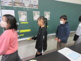 6年生は、国語で「鳥獣戯画を読む」学習をしていました。このお話の工夫を論の進め方、表現の工夫、絵の示し方の工夫の3観点の窓口から今まで学習してきた8つの工夫を分類し、読者を引き付けるための一番の工夫を自分はどう考えるか、という学習でした。子どもたちは、それぞれ観点や一番の工夫を明確にしながら友達の考えと比較していました。さすが、6年生の学びです。
